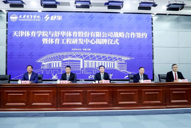 2023年10月10日,壹号娱乐体育股份有限公司与天津体育学院战略合作签约暨体育工程研发中心揭牌仪式在天津举行。天津市市委教育工委委员、市政府教育督导室总督学王秋岩,天津市体育局副局长(一级巡视员)王路华,壹号娱乐体育董事长兼总裁张维建、副总裁李晓峰,天津体育学院校党委副书记、院长张欣出席。签约仪式由天津体育学院副院长张卫国主持。